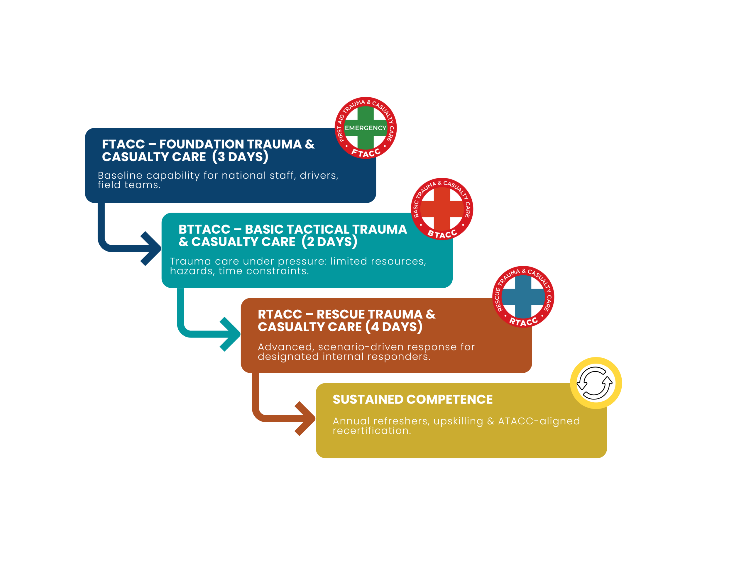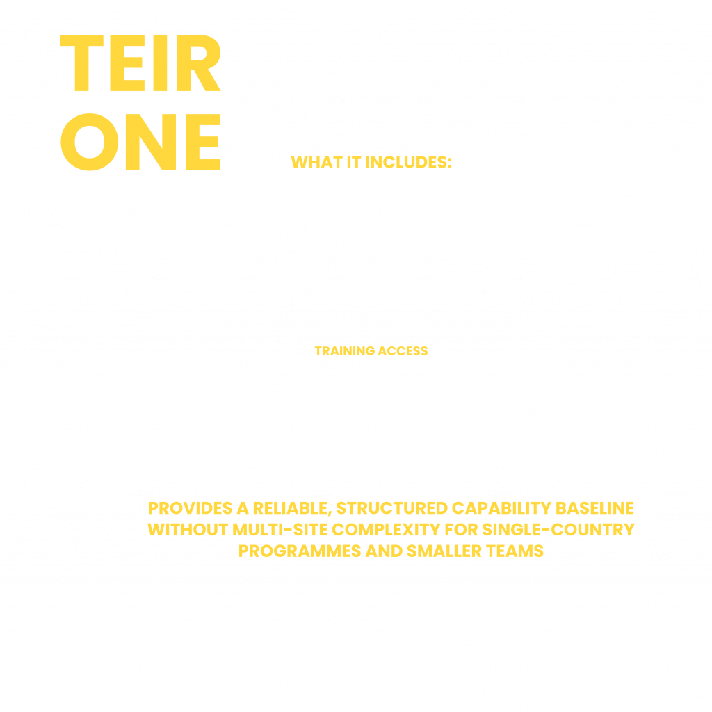 It is a year-round capability programme designed to support safer operations, stronger field teams, and donor-aligned duty-of-care standards.